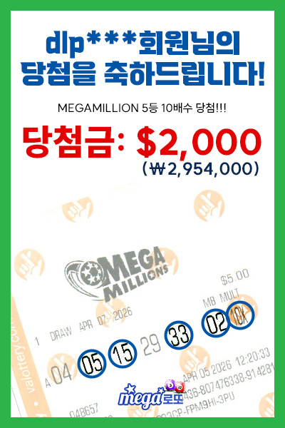 메가밀리언 추첨일 : 2026년 04월 15일 수요일 12:00