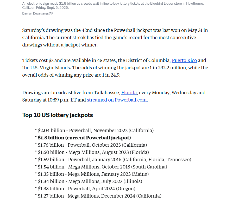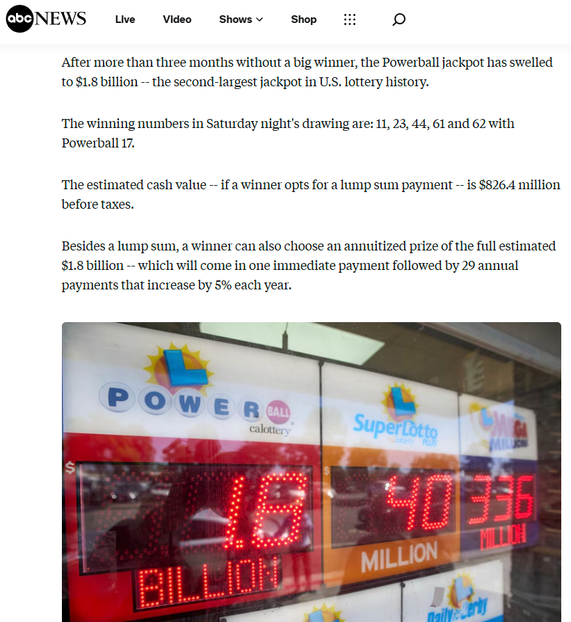 원문: https://abcnews.go.com/US/powerball-jackpot-surges-18b-2nd-largest-jackpot-us/story?id=125313244